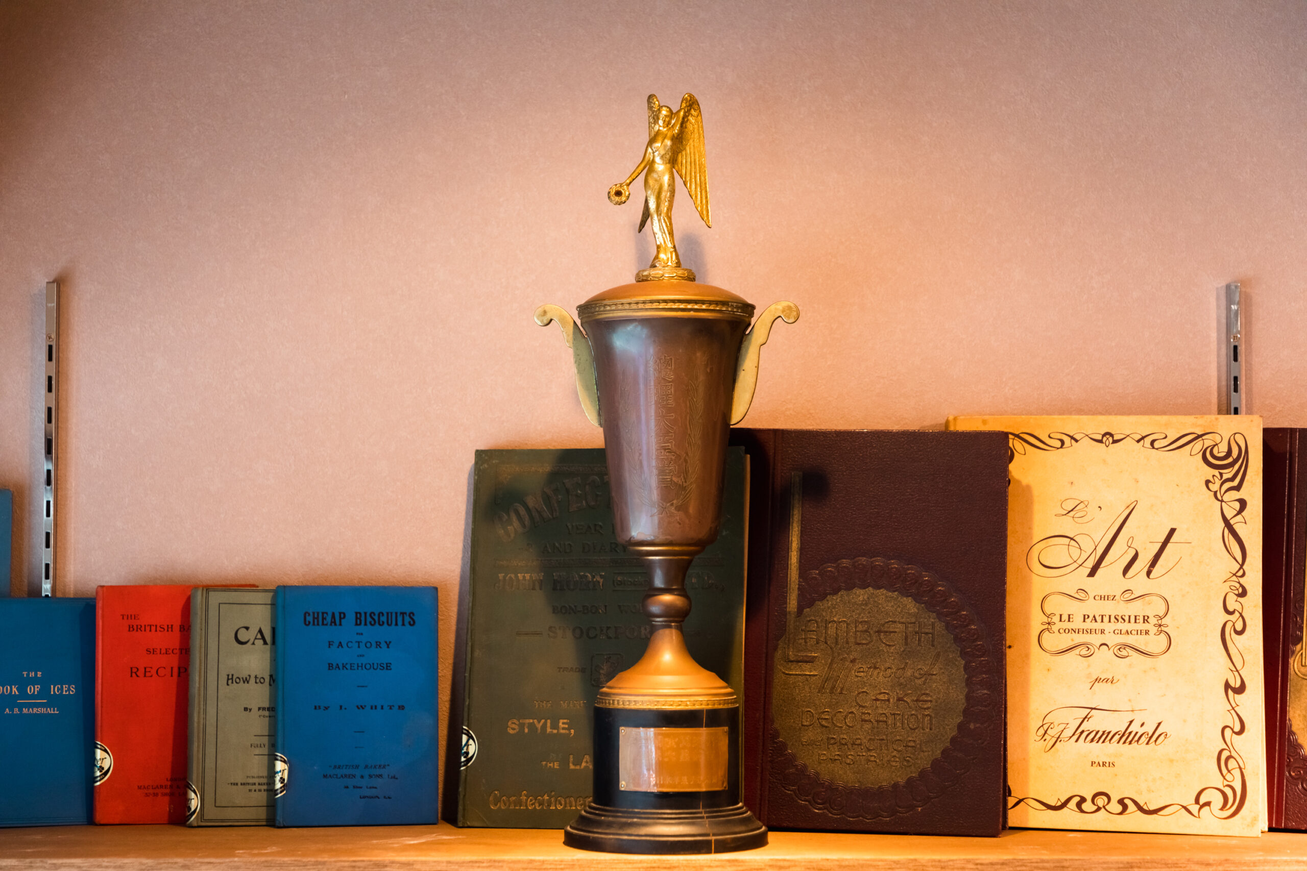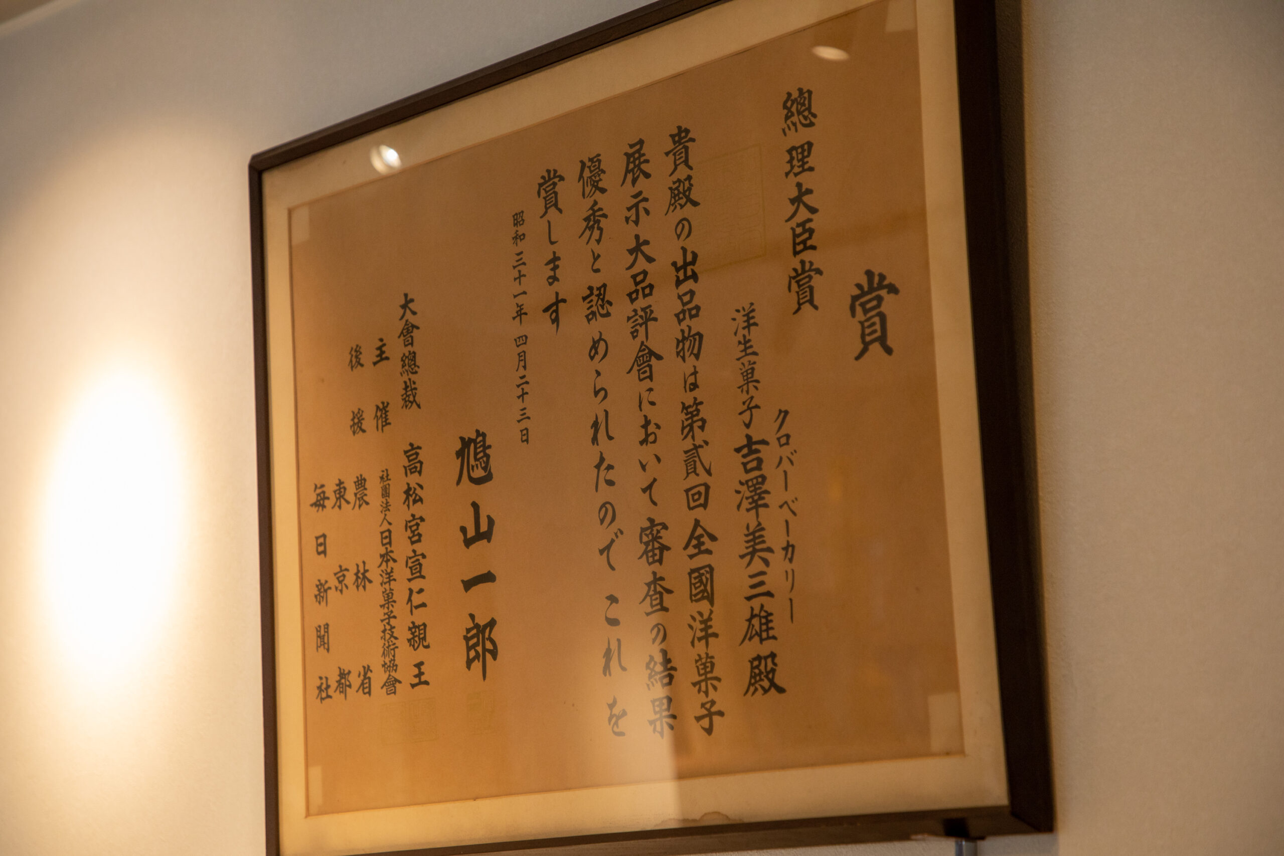初代 吉澤美三雄はもともと和菓子職人を目指し、祇園の和菓子店・甘泉堂で修行をしていました。しかし、そこの主人が研究熱心で洋菓子のレシピが載った洋書をヨーロッパから取り寄せていたほど。その影響を受けて「これからは洋菓子の時代だ」と洋菓子作りに進路を変更したそう。現在も彼が受け継いだ洋書やノートはクロバーの店頭に飾られています。